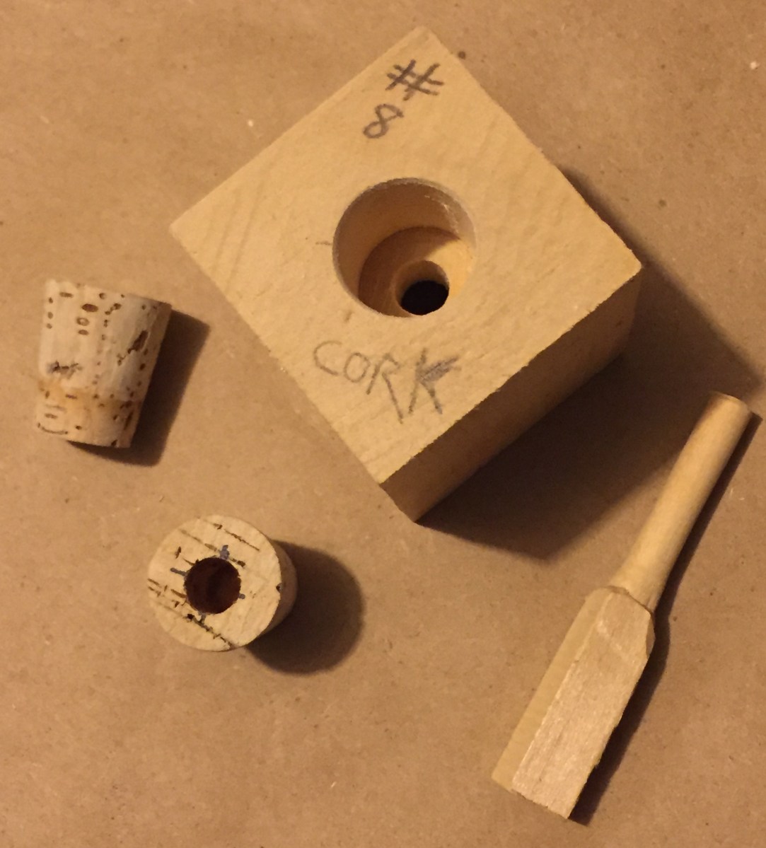 Block with holes drilled Published December 30, 2015 at 2423 × 2684 in Bottlestopper Corks ← Previous Next → Block, push stick and corks.