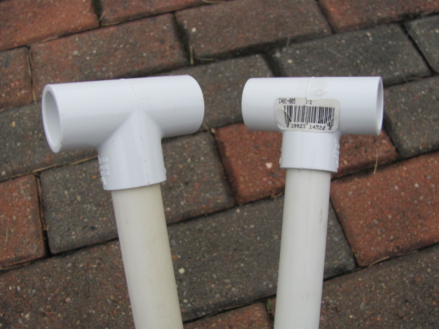 Begin by buying 1/2 inch PVC pipe and fittings in the following list. 4 “T” joints, 4 elbows, 4 caps as well as pipe to be cut into pieces. You will need 2 pieces 19 3/8 inches long. Also 2 pieces 21 3/8 inches long.