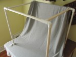 The next step is to drape a white sheet over the sides and back of the tent and the gray fabric.