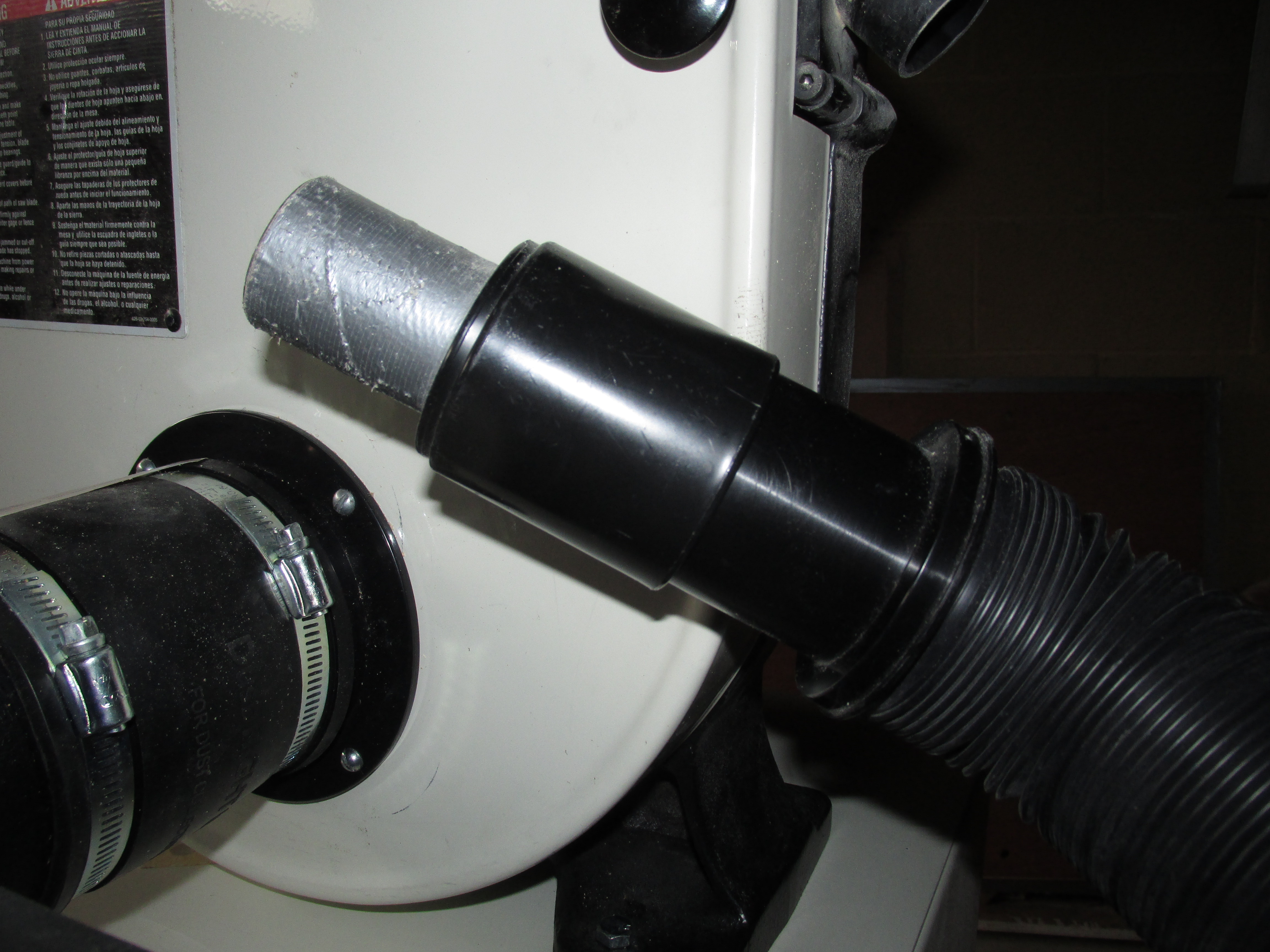 The poor placement of what is basically a hinged flange next to where the blade passes through the saw table has open space all around it. Dust continued to collect in the chamber that holds lower wheel even when connected to the Jet. Dust also escaped from various openings in the cabinet including around the port. At that point I felt the 4 inch system was no better than my old vac.