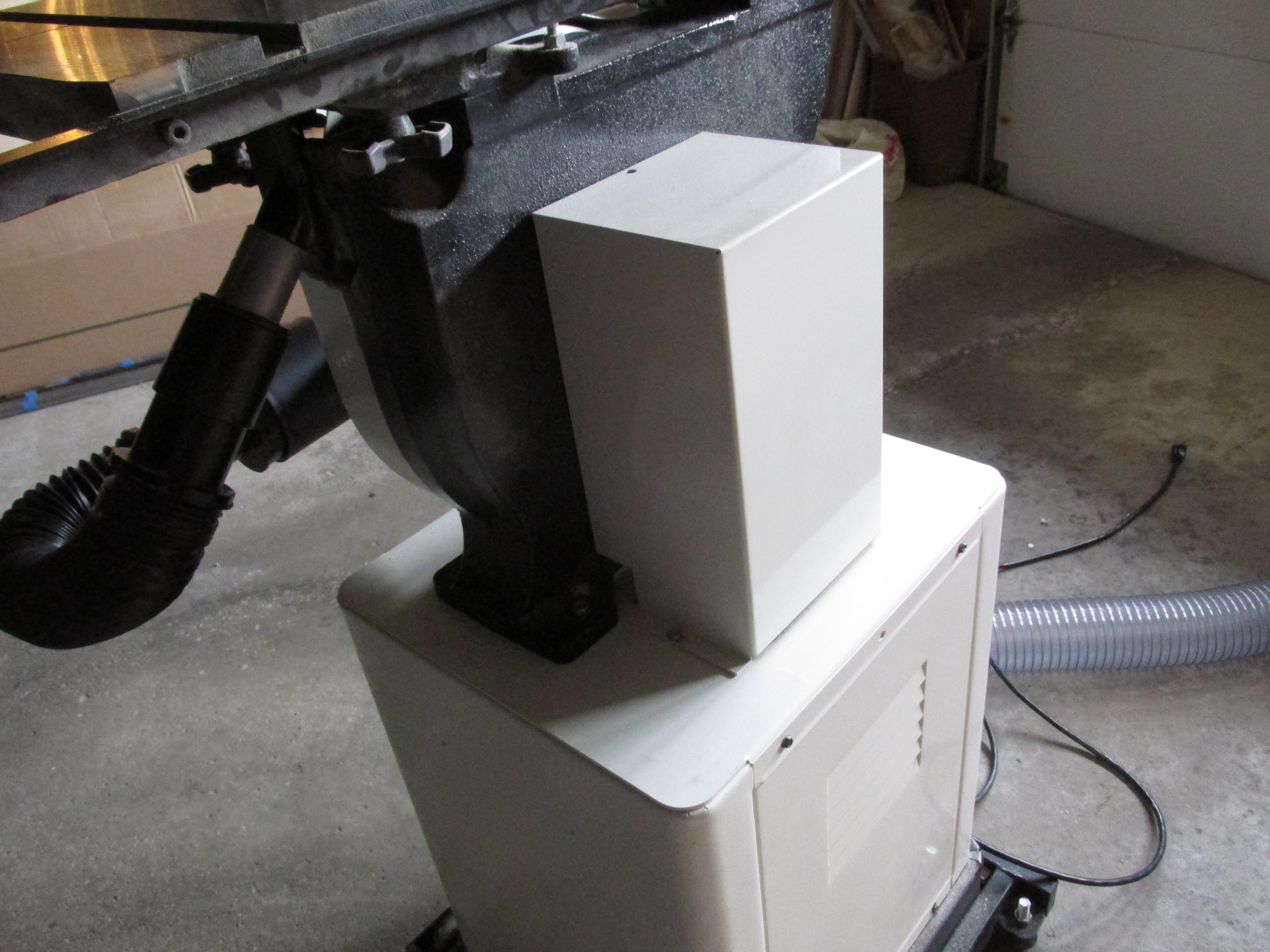 Late last year I decided to invest in a real dust collection system for my shop. Unfortunately my shop is too small for a REAL dust collection system so I just bought a Jet DC-1100VX-CK with a 4 inch hose port. It’s on a wheeled base and, despite its steep price tag, still can’t roll over its own cord any better than the numerous vacs I’ve owned. My old Ridgid shop vacuum just couldn’t do the job and my table saw already had a 4 inch port for dust collection. The new equipment works very well when attached to the table saw.