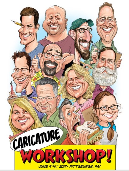 On June 9th, 10th and 11th of 2017 I participated in the Tom Richmond Caricature Workshop held in the Pittsburgh area. I was the odd duck in the workshop because of my background, or lack of one, in drawing. For the last 40 years I have been a woodcarving hobbyist. I have no formal training in drawing or sketching but really like the art of caricature and the humor it provides. The other students ranged from seasoned live caricature pros to professional cartoonists/comic book artists and animators.