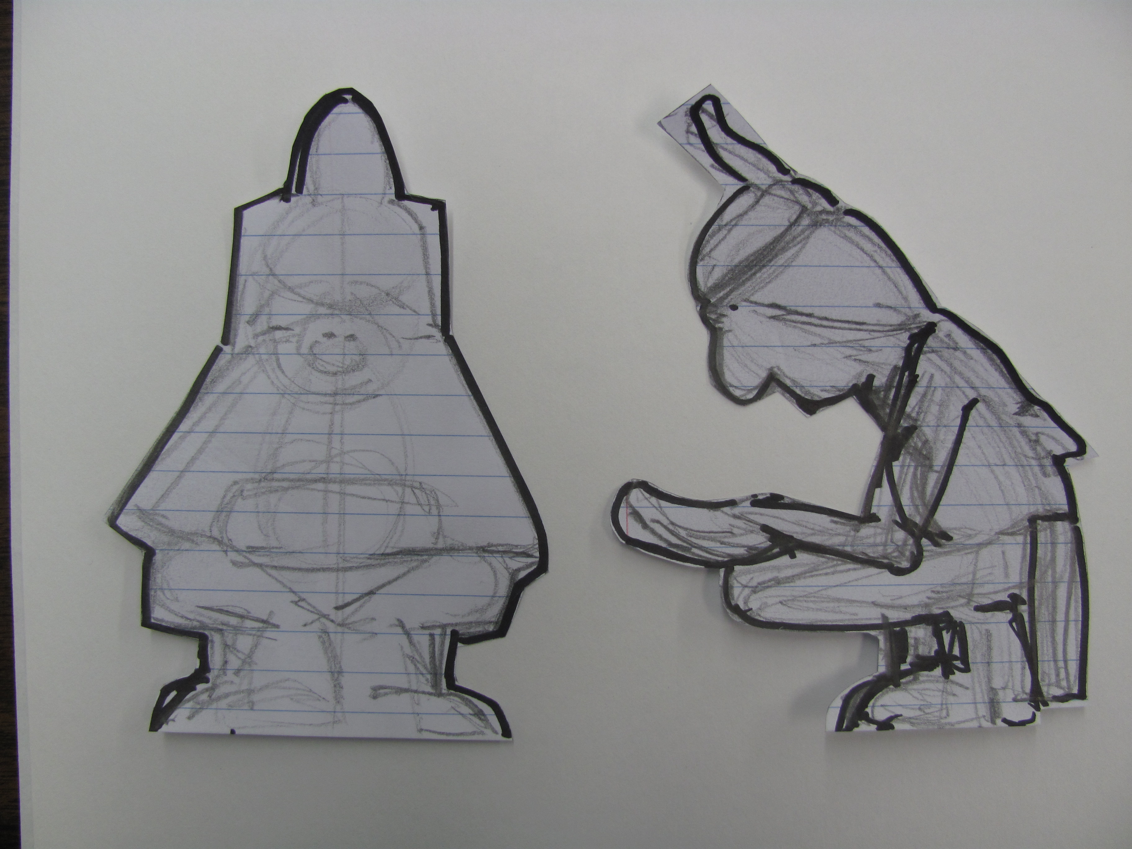Chris visited with each of us to discuss our ideas and develop a pattern. He explained the technique for sketching the figure. This included a front and side view. The student cut the paper pattern, transferred it to the wood and used a band saw to cut the blank.